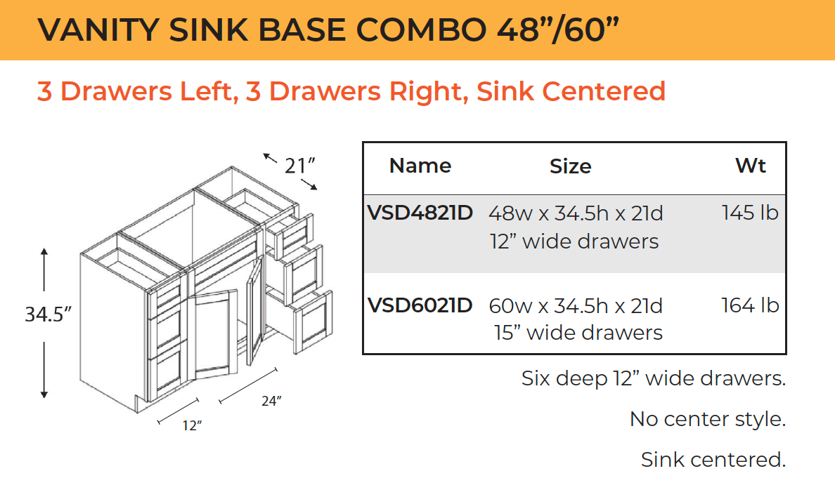 Vanity Sink Base Combo Unit 48" Wide, 34.5" Tall, 21" Deep.