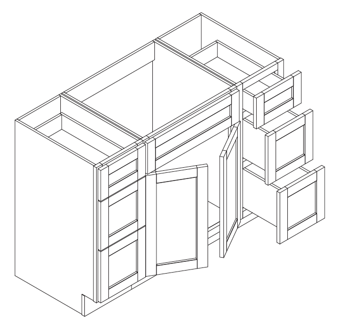 • Single door cabinetry is pre-hung hinge R by default. Customer to switch hinge orientation with touch up kit at jobsite.